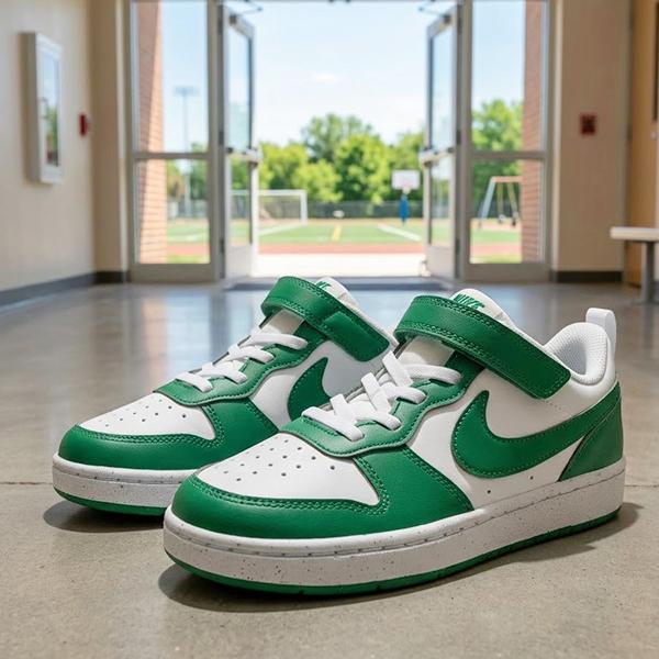 2026夏新作 ナイキ スニーカー キッズ NIKE コート ボロー LOW リクラフト PS 靴 シューズ 子供 子供靴 子ども ベルクロ 学校 通学 ホワイト グリーン DV5457
