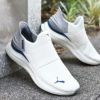 シュータン一体型のスリッポン構造により、かかと部分が柔らかく、手を使わずに簡単に足入れが可能。忙しい朝や外出時にもストレスフリーで履ける一足です。アッパーには通気性に優れたメッシュ素材を採用し、軽量で柔らかな履き心地を提供。さらに、SOFTRIDEミッドソールが究極のクッション性を発揮し、長時間の着用でも快適さが持続します。ランニングはもちろん、ウォーキングや日常のお出かけにもぴったりの万能シューズです。デザイン面では、つま先とシュータンにプーマキャットロゴ、サイドにはPUMAロゴを配置し、スポーティーで洗練された印象に。機能性とスタイルを兼ね備えた、毎日履きたくなる一足です。