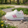 LIFESTYLEの人気シューズ「323」のキッズモデルに、シーズナルカラーが登場。1970年代のスリム&ロープロファイルなランニングスタイルを、脱ぎ履きしやすい面ファスナーとバンジーレースで展開。フレアなデザインの少し厚みのあるミッドソールが、70年代のクラシックなルックスに現代的なディティールをプラス。