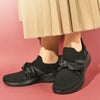 サテンリボンのかわいらしさをプラスしたデザインのスリッポンタイプのカジュアルシューズ。
