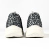 レオパードプリントのトリムを施したエンジニアードニットのアッパー。