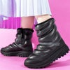 黒 ブラック スノーシューズ 防滑 アウトドア 雪 キャンプ 防寒 ショート ミドル ブーツ スノトレ 防水 ウィンターブーツ ウィンターシューズ シューズ 靴 ジッパー タウン カジュアル ぷっくり フォルム スノトレ 暖かい フリース ライナー