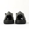 甲からつま先にかけての素材にシンセティックマイクロスウェードを配置し、草木や岩などから、つま先をガード。バンド部には通気性を考慮したPUフォームボンディングメッシュを採用しています。履き口は、伸縮性があって着脱がしやすいエラスティックバンドシステム。普段使いはもちろんのこと、キャンプや水辺などのライトなアウトドアシーンで重宝します。