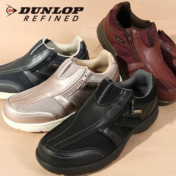 送料無料 スリッポン ウォーキングシューズ ダンロップリファインド DUNLOP REFINED C1511 レディース 4E 幅広 ワイド 軽量 ファスナー付き 反射材 カジュアル ウォーキング 通勤 仕事靴 スニーカー シューズ 靴 DC1511