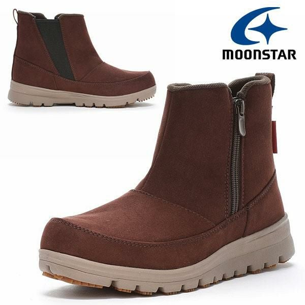 6. 送料無料 防水 ショートブーツ ムーンスター レディース MoonStar マウンテンフィールド MF WPL04 2E 軽量 防滑底 断冷 防寒 ファスナー付 スノーブーツ ウィンターブーツ シューズ 靴 ヌバックブラウン 茶 MF-WPL04