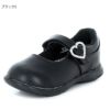 メリージェーンタイプのベーシックなデザインで普段履きにも使え、ラインストーンをあしらったハートの美錠がワンポイントになっています。