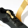 通常のシューレースと面ファスナー付きストラップの組み合わせで、足をしっかりとホールドするフィット感に調節可能。