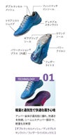 親指の圧迫感を解消したつま先設計とし、かつ、中足部とかかと部のサポート性を高めることで、シューズ内の足のズレを抑え、パワーロスのない素早いフットワークを実現。