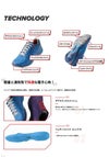 中足部からかかと部を立ち上げ、足との一体感を高めるとともに、かかと前方を隆起し、シューズ内での足のズレを抑え、さらにフィット性が向上。ムービングエースより柔らかめ。