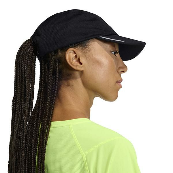 フックアンドループ式バックのクロージャーでカスタムフィットが可能。外出先でも簡単に調整できる。マラソンでも、趣味のジョギングでも、ランナーが快適かつスタイリッシュに過ごせるようにデザインされたキャップ。