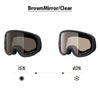 レンズは雪面からの乱反射(偏光)を遮断する「偏光レンズ」+撥水性、防汚性にすぐれた 「クラリテックス・コートレンズ」+防曇性に優れた「プレミアム・アンチ・フォグ」の最強トリオに、 太陽光の強さに合わせて最適な視認性を確保する調光レンズ