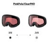 太陽光の強さに合わせて最適な視認性を確保する調光タイプで、ピンクの外レンズのクリアと内レンズのクリア調光レンズが紫外線量に合わせて最適な視認性を確保します。また、ギラツキを抑える偏光機能も併せ持っています。