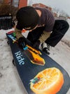 ノーズとテールのハンマーシェイプが特徴です。自由に滑るだけでなく、姿勢を低くした鋭いカービングでも真価を発揮します。