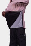 サイドジッパーを大きく開きエントリー出来るので脱着もスムーズです。ウェアと同じ10Kの耐水性があり、内側はフリース起毛となっていて適度な保温力もあります。