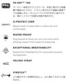 断で作られ動きやすく高いパフォーマンスをサポート。胸ポケットに止水ファスナーを採用。脇にファスナー付きベンチレーション。ドローコードで調節可能なヘルメット対応フード。袖にパスポケット。パウダースカートはパンツと結合可能。内