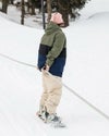 パウダースカート搭載で、ジャケットとパンツを接続することにより、雪を封じ、暖かさを保ちます。