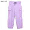 ワイドカーゴパンツは、ポケットのロゴがアクセント。