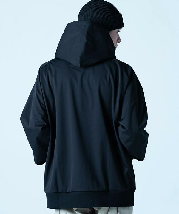 フリースタイルスキーウェアにも採用している撥水性、耐水性、耐久性の高いニット素材で作られたパーカー。