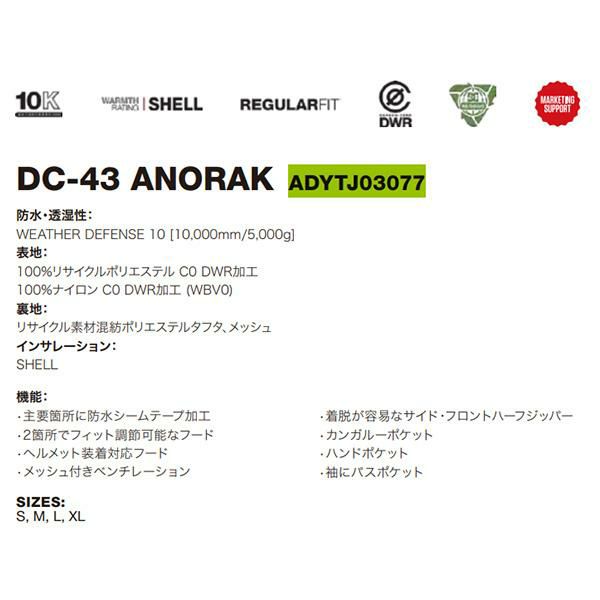 30%off 送料無料 スノーウェア ディーシー DC SHOE メンズ ジャケット DC-43 ANORAK アノラック スノーボードウェア スノーボード スノボ スキー スノー ADYTJ03077