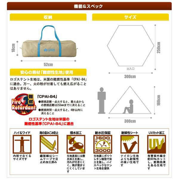 他の画像を見る ロゴス LOGOS タープ テント 日差し除け UVカット 日よけ 日除け 風よけ 風除け 目隠し アウトドア用品 キャンプ用品 送料無料 ロゴス LOGOS ナバホ ブリッジヘキサタープセット-BB ヘキサタープ 日よけテント サンシェード タープ テント ヘキサゴンタープ アウトドア キャンプ レジャー ピクニック BBQ バーべキュー 71806509 送料無料 メーカー希望小売価格 ¥ 21,780 のところ エレスポ価格 ¥ 21,780 税込 在庫切れ 再入荷お知らせ お気に入りに登録する
