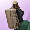 ■仕様 背負うことのできるショルダーハーネス/D字型で大きく開くジッパーオープニング/強度の強いバータックとステッチ/両サイドに荷揚げ用ハンドル/4 本のコンプレッションストラップ/サイドデイジーチェーン/フラップ裏にメッシュポケット/ID ウィンドウ/収納用メッシュバッグ付属/サイドにジッパーつきセカンドコンパートメントと本体内部にメッシュポケット/本体に2 本のキャリー用ハンドル