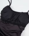 ショルダーストラップを含めた両サイドのリボンで、シャーリングやフィット感の調整が可能です。