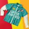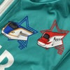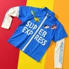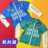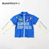 「ドクターイエロー」「はやぶさ」「かがやき」「こまち」の車両のデザインがプリントされた長袖ラッシュガード。