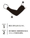 フィット感があり、吸汗速乾性のよいアームカバー。腕口滑り止めゴム付き。