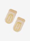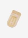 表面は通気性を考慮した薄手のニットで、肌面は汗によるムレ感を軽減するメッシュ仕様。夏の日差しを遮りながら、快適な着心地にデザインしています。着圧を考慮したリブ設計で、ソックスの足裏には滑り止めを配置。履き口には記名スペースを備えています。出産祝いや、ハイハイやつかまり立ちの乳児への贈り物としておすすめで、ギフトにも最適なキュートなボックスパッケージに梱包。