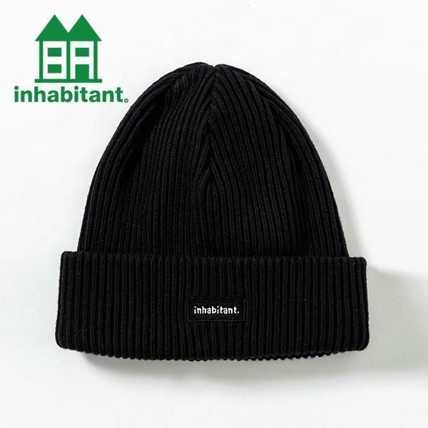 inhabitantロゴが入ったリブ編みのニットキャップ