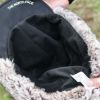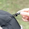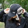 表地には防水透湿性に優れたナイロンオックス生地を採用。耳当て部分のポリエステル素材のファーは、リアルファーのような色合いと肌触り。毛足が長く、デッドエアをため込み保温性を高めています。縫い目はシームシーリング加工済み。耳当てはテープバックルで頭部に巻き上げることも可能。UVプロテクト(UPF50+、紫外線カット率95%以上)機能付き。