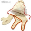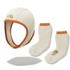 オーガニックコットンで編んだキャップとレッグウォーマーのセット。縫製を極力減らし、切り替えの当たりが少ないホールガーメント製法をベースに作っています。立体的な構造で、赤ちゃんの頭と足に心地よくフィットします。キャップは頭からずれにくいよう、あご下に柔らかな面ファスナーを配置。レッグウォーマーは足先付きで、寒いときは靴下のようにつま先まで覆うことが可能。気温に合わせて調節ができます。二次利用が可能な巾着袋入りで、手提げ袋として使用することも、手提げ部分をベビーカーに掛けることもできます。環境問題に配慮しつつ、ギフトにも適したアイテムです。