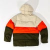 冬の冷たい空気からしっかりと体を守ります。3色のカラーリングが特徴的で人目を引く大胆なデザインです。