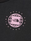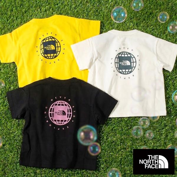 地球儀とTHE NORTH FACEのスクエアロゴを組み合わせた、ジオスクエアロゴのプリントを背面に大きくあしらった半袖Tシャツのベビーモデル