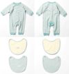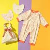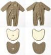風合いのよいオーガニックコットンを使用した、長袖ロンパースとスタイ2点のセット。