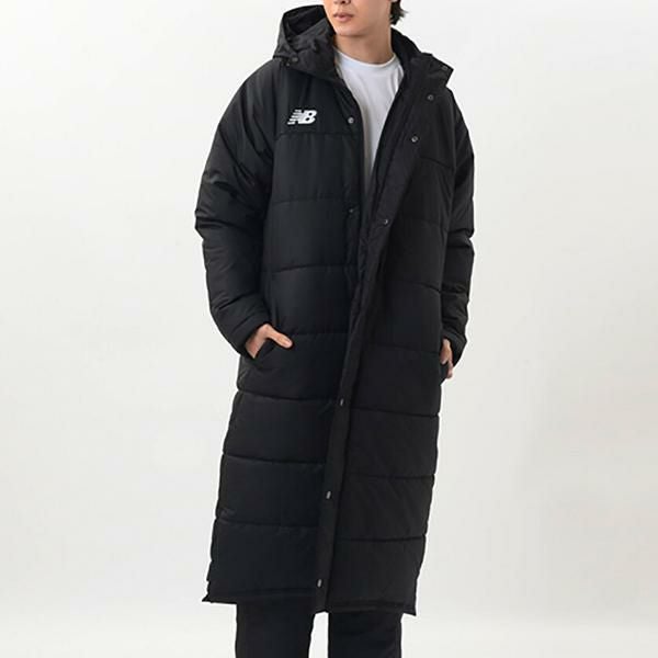 黒 紺 ブラック ネイビー ロゴ 無地 防寒 暖かい あったか ロングコート ロングジャケット 中綿 ジャケット アウター フード付き ジャンパー ベンチコート 上着 スポーツ 野球 サッカー フットサル バスケットボール バスケ バレーボール バレー マラソン テニス NB ニューバラ 大きいサイズ