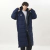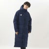胸のワンポイントNBロゴと後裾のリニアロゴでアレンジしたベーシックな中綿ロングコート。