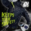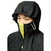 耐水圧10000mmH2O,透湿度5000g/m2-24h、ストレッチの快適性、蛍光反射による視認性、両面ベンチレーションの通気性を確保したレインジャケット●未使用時は小さくスタンドカラーになるロールアップフード●内側フラップにはフード使用時も内部が蒸れにくい空気穴付きベンチレーションを搭載●プリント補強された肩部は摩耗や損傷を軽減し、荷物のズレ落ちも防ぎます●背面に反射糸とベンチレーションを採用し、夜間の視認性を高めて背中の蒸れを軽減●通常時は鮮やかに目立ち、暗所では光を反射する蛍光反射付