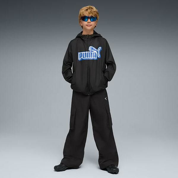 送料無料 プーマ キッズ ウインドブレーカー PUMA ESS GRAPHICS ウィンドブレーカー フルジップ パーカー ジャケット ナイロン ジャージ ジュニア 子供 ビッグロゴ アウター ジャンパー 防寒 2026春夏新作 694260