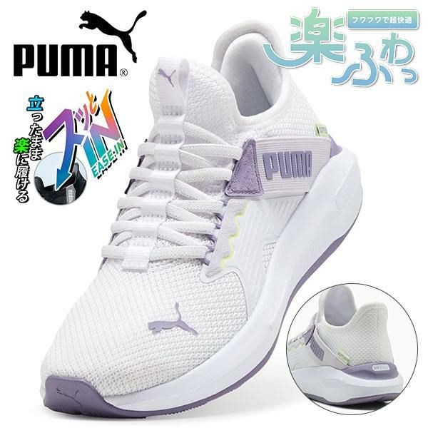 立ったままスッと履ける 送料無料 プーマ レディース スニーカー スリッポン ゴム紐 履き心地抜群 ふわふわインソール PUMA SOFTRIDE エンゾ 5 EASE IN ウィメンズ イーズイン ローカット シューズ 靴 2026春夏新作 313293