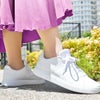 ※こちらの商品は、細身の一般的スニーカー(adidas スーパースター、CONVERSE オールスター)と比べて通常幅になりますので、ジャストサイズをおすすめ致します。また甲の広い方は0.5cmアップをオススメします。