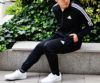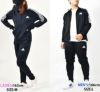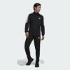 AEROREADYジャージ素材脇サイドパネルメッシュ素材3ストライプストラックスーツ上下セット。パンツジップ付きポケット。テーパードジッパー仕様。