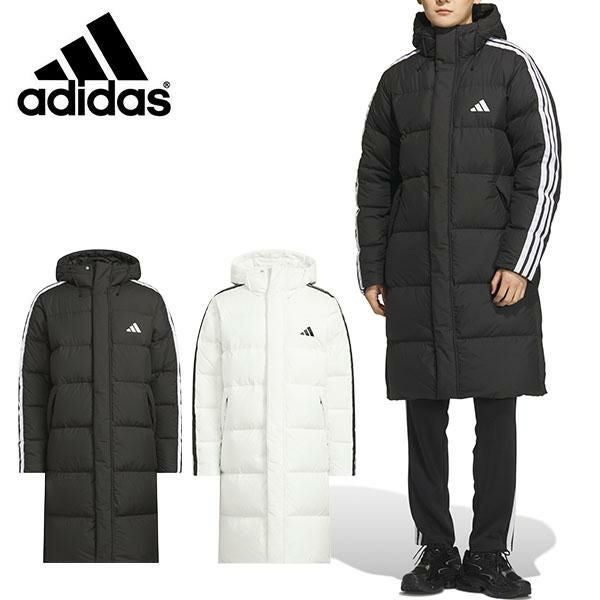 送料無料 アディダス メンズ レディース ロング丈 ダウンジャケット adidas M 3S ロングダウンコート ベンチコート 防寒 スポーツ観戦 フード付き ジャンパー アウター 2025秋冬新作 WF945
