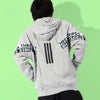 スポーツ用に開発され、90'sのストリートを席巻したトラックスーツからインスピレーションを受けた、WORDINGパック。汎用性の高いフルジップフーディーは、インパクトのある「THE THREE STRIPES」ワーディングが施されたテープを両袖にアングルをつけて配している。ヘビーウェイトの裏毛素材を採用することで、長期にわたり着用が可能。背面の中央上部には、フローティングボールドストライプスをプリント。前面からはシンプルな見た目ながら、背面は非常に印象的に仕上げている。ルーズフィットを採用し独特の落ち感を醸し出す。