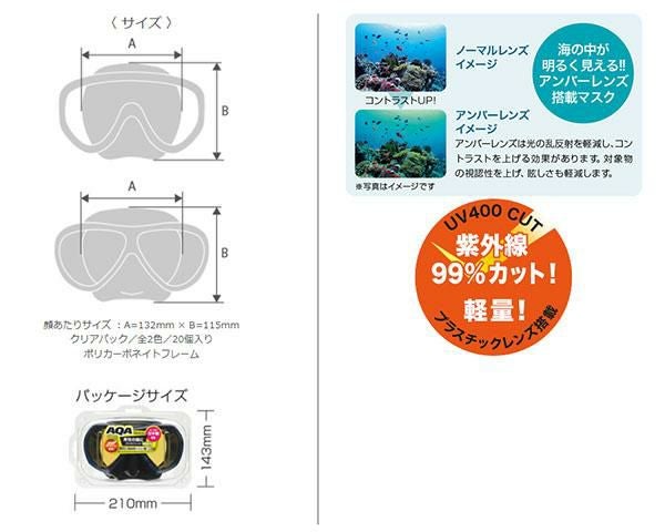 AQA エーキューエー ワイド マスク メンズ 幅広 水中 メガネ スノーケリング シュノーケル スノーケル