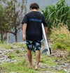 持つグラッシークロス生地を使用した半袖ラッシュガード。