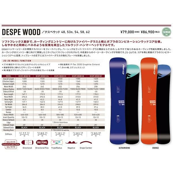 送料無料 ボード 板 gray snowboards グレイ スノーボード メンズ DESPE WOOD デスぺウッド スノボ カービング カーヴィング ボード 148 153 154 158 162 2025-2026冬新作 25-26 25/26