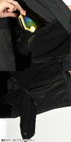 ジャケット表側の胸とウエスト部に小物の収納に便利な大型ポケットを配置。左袖にはリフトチケット用の小型ポケット。ジャケット内側にはサングラスやゴーグルの収納に便利なメッシュポケットを装備しています。