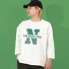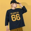 リサイクルポリエステルとコットンの三子糸を使用した、度詰め天竺素材のコレクション。クラシカルなユニフォームデザインのフットボールTシャツです。厚みがありしっかりとした質感の生地は、3本の糸を撚り合わせた三子糸の形状により、独特のスラブ感が特徴です。幅広の身幅、丈は短めのリラックスフィット。アメリカのカレッジフットボールをイメージしたカラーで、フロントにヴィンテージ感のあるクラックプリントを配置しています。
