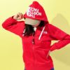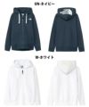 乾きやすさを考慮し、リサイクルポリエステルを混紡しています。フード部分のロゴは立体刺繍で表現。